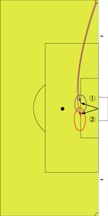 「イントレスティングかつエキサイティングな試合やったな」 「変な横文字はやめてんか」 「すまん」 「素直やな」 「なにはともあれ、先発やな」 「リバプールの左は、丸ごと代わっている」 「ファビオ・アウレリオ、バベルからリーセ、ベナユン」 「チェルシーは、マルダがカルーに、フェレイラがエシエンやな」 「両チームともチームの骨格は変わっていないが、21分に事件が起きる」 「裏に抜けたドログバを無理に追ったことでシュクルテルが負傷」 「ヒーピアに代わる」 「これは痛い」 「非常に痛いな」 「スピードを考えても不安が残るし、後方からの組み立てを考えた時に、シュクルテルがいないと非常に困る」 「彼がいることで、シャビ・アロンソを潰されてもパス出しに困らない、というのが、今シーズンのリバプールの強みやからな」 「1点以上取らないと勝ちがないリバプールにとっては前半から頭のいたいことになった」 「そういえばだな」 「なんだ」 「チェルシーのシャビ・アロンソに対する守備は独特ではなかったかね」 「独特というか、ほとんど詰めに行かなかったのが特徴的やな」 「彼からチャンスの種をつくるのがリバプールの狙いなのに、そこを潰しに行かないのは不思議ではある」 「アロンソに詰めるより、ゾーンをきちんと敷いてボールの入るスペースを潰すことに専念していた感じやな」 「特に、チェルシーが32分にリードを奪ってから、追いつかれる64分まではその傾向が強かった」 「アロンソにはずいぶんと簡単に大きな展開や、細かい組み立てを許していた」 「大きな展開というのは、例えば下のようなパスやな」 「左右に40m以上の長いパスでボールを散らしたり、縦へのフィードでディフェンスを押し下げるようなプレーやな」 「これは技術的に上手い、下手がはっきりする」 「そりゃ、長いボールを正確に蹴るのは難しいでな」 「特にサイドに蹴るボールに関しては、距離をあわせるという点において才能の差がでやすい」 「下の感じか」 「上手い選手が蹴ると、例えばワンバウンドしたボールがすっと足元にあらわれる感じで、コントロールをするとそのままディフェンスと勝負できる体勢になることができる」 「ところが、あまり上手くない選手のボールは腿や腹の辺りに来るのでコントロールに手間がかかり、悪いときはワンバウンドでちょうど頭を越えたりする」 「上手い代表はグアルディオラで、彼はこの手のパスが抜群に上手かった」 「今ならシャビ・アロンソやキャリック、ピルロかね」 「逆に、ディアラやバチスタは距離をあわせるのがあまり上手くない」 「上手い選手は、ほとんどいないから、他の誰をあげても逆の例になると思うけどな」 「次に組み立ての例を考える」 「要するに、組み立てというのは、ゾーン間や角でフリーになる選手にいい形でボールを渡す、ということやな」 「そのためには、どうしても相手を騙さないといけない」 「読まれた場所にそのまま出しては絶対にフリーにはならんからな」 「例えば、中にパスを出すフェイントから外に出すとか」 「縦に大きく出すフェイクから短く出すとか」 「左に出すフェイントから右に出すとか」 「逆サイドを向いておいて、味方が引いた瞬間に合わせるとか」 「以上の他にも、パターンは色々と存在する」 「とりあえず、上の4つに関してはシャビ・アロンソが実際にゲームの中で使用していた」 「さらに言えば、組み立てるパスでは、スピードが大切で、理想的には受け手が触る瞬間に止まっているか、コントロールせずに行きたい方向に行けるボールが良い」 「プレースメントも大切で、そのままドリブルして欲しいならコントロール直後にそうできるように、ダイレクトで戻して欲しいなら戻すように、サイドに展開して欲しいならサイドに蹴れる位置に置くとなおよい」 「上のような条件を満たすパスを出すことができれば、”組み立て上手”と呼ばれるわけやな」 「うむ」 「普通はそのような選手にはなるべく早く距離を詰めてパスコースを限定していくもんやけどな」 「チェルシーがゾーンを優先していたのはわりと珍しいのではないかと」 「そうは言っても、同点に追いつかれたのは、ゾーンを重視して待ち過ぎたのが発端やけどな」 「左に戻ったドログバがキャラガーに寄せていかなかったのが原因やったな」 「あれは個人のミスといえばそうかもしれん」 「リバプールが、ベナユンの見事なドリブルから、トーレスのゴールで追いついたのが64分」 「69分にチェルシーが交代を行って、カルーの代わりにマルダが入る」 「リバプールはこの前の段階でベナユンとカイトを入れ換えていた」 「77分にはそのベナユンに代わりペナンが入る」 「ペナンはオドンコーなんかと同じで、一度も相手に向かず、最初からスペースに走り過ぎるのが惜しい」 「速い選手にはその傾向が強いというのはある」 「1-1のまま延長戦に入り、最終的な配置は次のようになる